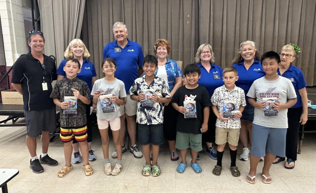 The Rotary Club of Lahaina Sunset presented dictionaries to 100 third and fifth grade students at Princess Nāhiʻenaʻena School during a special event on Friday, Oct. 3.