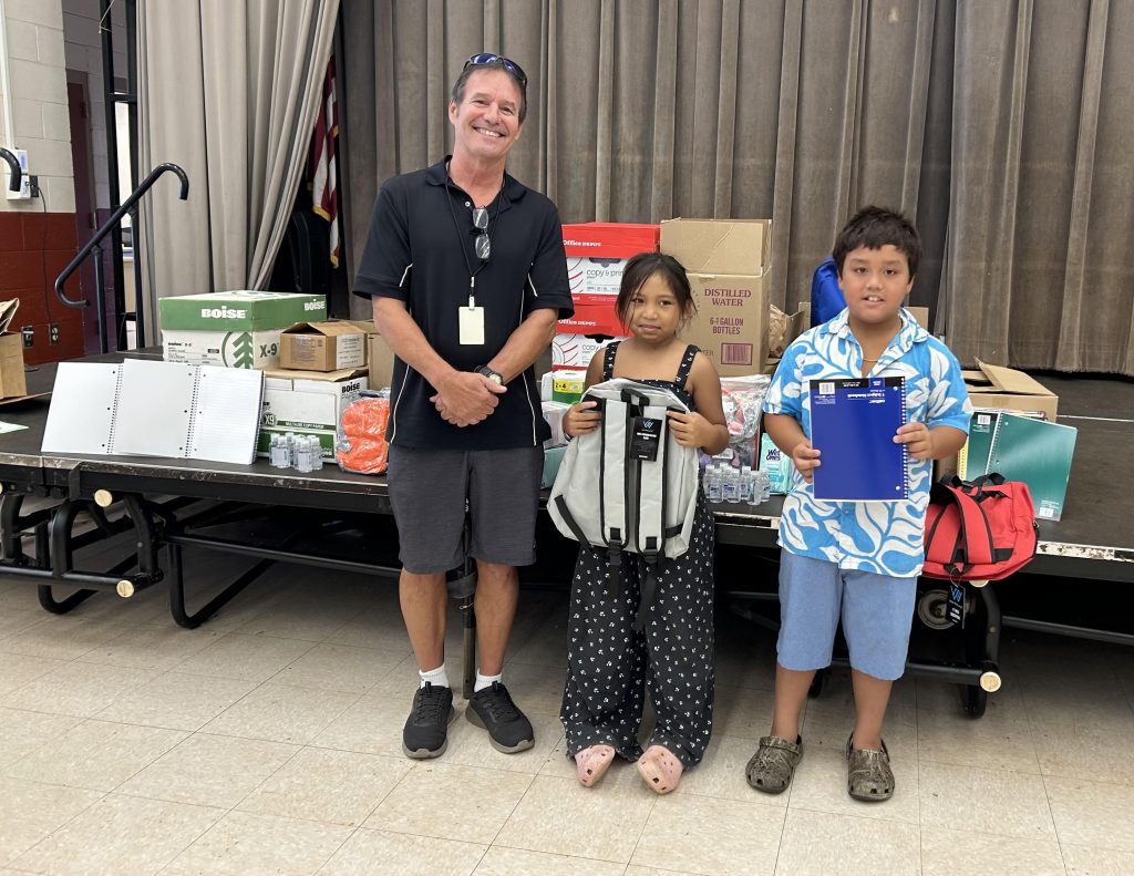 During a special presentation, Youth Service Chair Dan Jaeger displayed 15 boxes of school supplies on the stage for the students to see. These supplies were collected at the club’s 10th annual drive at the Lahaina Cannery Mall, thanks to contributions from 5A Rent-a-Space, Maui United Way, and members of the local community. The supplies will be made available to teachers to help stock their classroom supply closets.