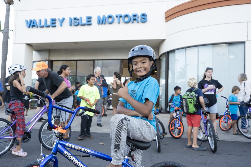 Jim Falk’s Valley Isle Motors hosted more than 200 children and their families last week and presented each child with a new bicycle as an early Christmas present. The Ford dealership’s showroom was empty of cars but filled with bikes of all sizes and a sea of smiling faces.