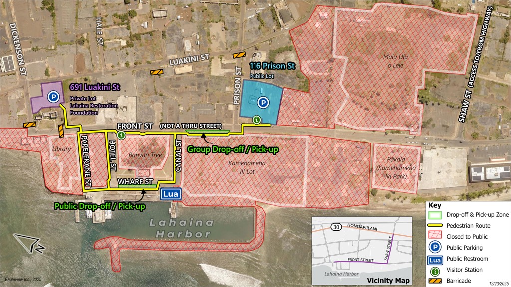 Following one week of operations at the State of Hawaiʻi’s Lahaina Small Boat Harbor, some adjustments are being made to the public access plan for the Lahaina Historic District. Working in partnership with members of the community and tour boat operators, the County of Maui is making the following changes:
